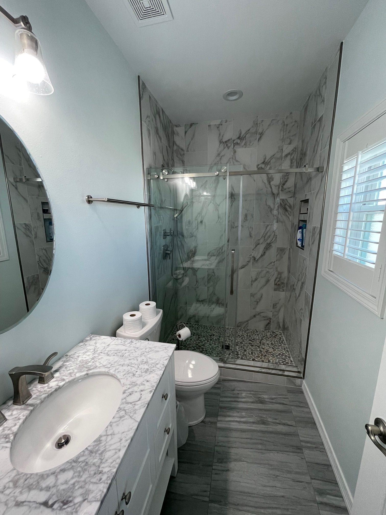 Sea Breeze was a top-to-bottom coastal upgrade for a Navarre Beach home, focused on adding comfort inside and resilience outside. We built a brand-new primary bathroom addition off the side of the house, creating a true master suite experience with the space and layout the home was missing. Inside, we carried the refresh through all three existing bathrooms, updating them for modern daily use while keeping a clean, beach-friendly style that fits the setting.